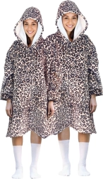 - Stiil ja funktsionaalsus: leopardimuster, suur kapuuts ja avar tasku