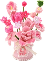 Avasta loomiserõõm ja pane kokku mõjuv lillekompositsioon elegantses silindrikujulises flowerboxis, mida kaunistavad lint ja pärlikesed. Lihtsa juhendi tõttu sobib komplekt suurepäraselt algajatele ja noortele meisterdajatele. Romantilises stiilis lõppdekoor täiendab hästi tuba, elutuba või laste nurka.