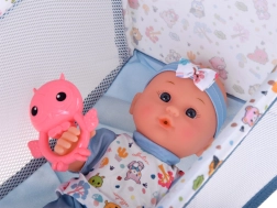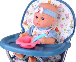 Täielik mängukomplekt väikestele hoidjatele: armas beebinukk rikkaliku varustusega toitmiseks, mähkimiseks, magamiseks ja jalutuskäikudeks. Komplekti kuuluvad kokkupandav nukuvanker, söögitool, reisivoodi koos kotiga, poti, pudel, kauss lusika ja kahvliga, lutt ketiga, mänguasjad ja papud. See komplekt arendab empaatiat, loomingulisust ja rollimängu oskusi ning pakub tunde põnevat mängu kodus ja teel.