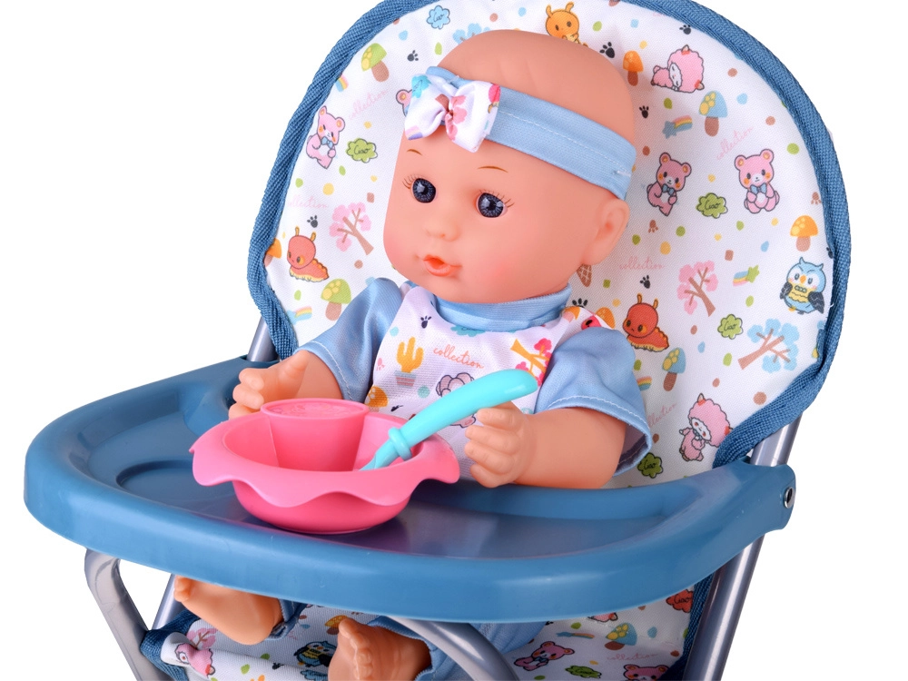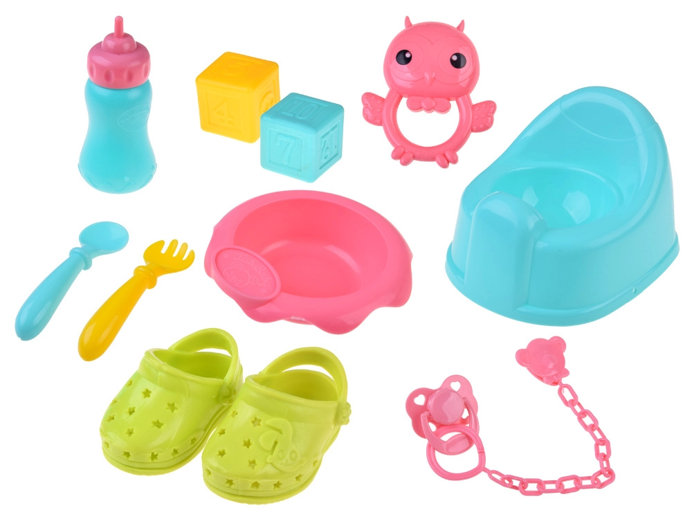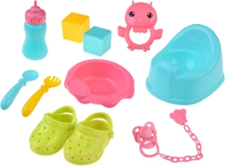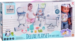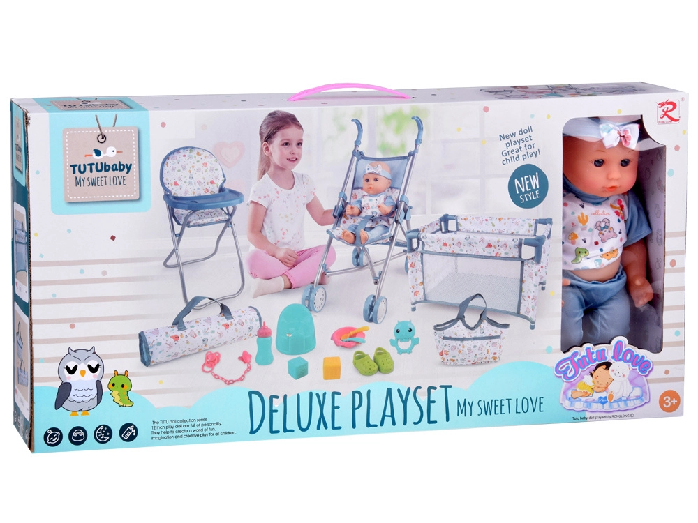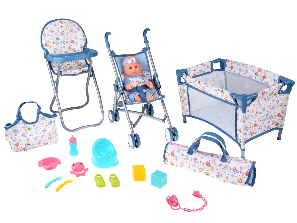Praktiline varustus hõlmab söögikomplekti (kauss, söögiriistad ja pudel), potti, lutti ketiga, värvilisi klotse ja kõristit. Reisivoodi hingavate võrkkülgede ja kotiga sobib hästi mänguks ja hoiustamiseks. Tänu rikkalikule lisavarustusele saavad lapsed hõlpsasti matkida päris beebihooldust ning arendada suhtlemis- ja peenmotoorikaoskusi.