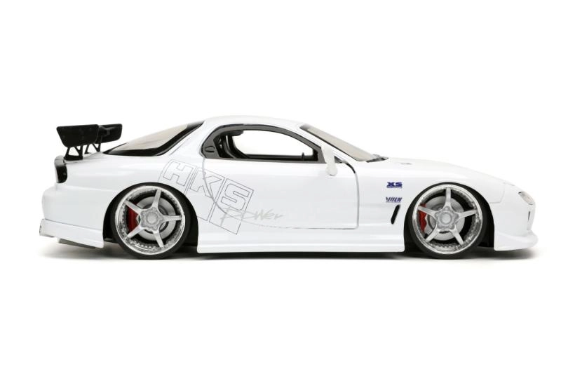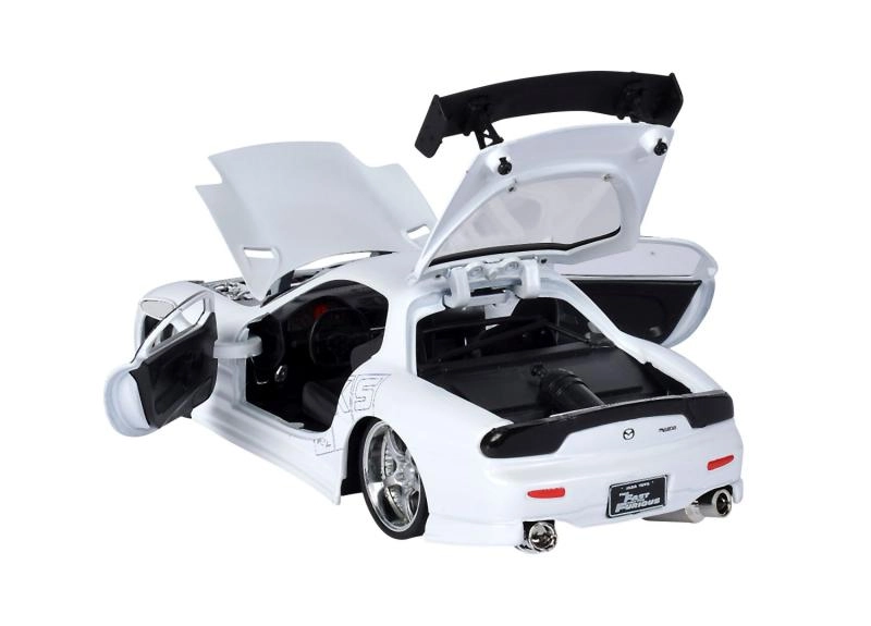 See realistlik Mazda RX-7 mudel toob teie vitriini Kiired ja vihased filmi meeleolu. Mõõtkavas 1:24 paistab silma truult teostatud keredisaini, sportlike rataste ja aerodünaamilise tagatiivaga. Tänu vabajooksuga ratastele saab see tasasel pinnal ka sujuvalt liikuda.