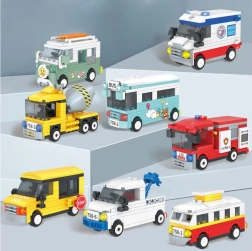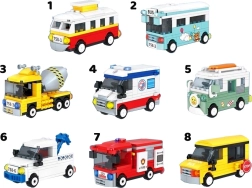 Valikus on linnas ja ehitusel levinud masinad: tramm, buss, koolibuss, kiirabi, tuletõrjeauto, traktor, betoonisegisti ning matkaauto/van. Iga mudel on eraldi komplekt pildilise juhendiga, sobides ka algajatele ehitajatele.