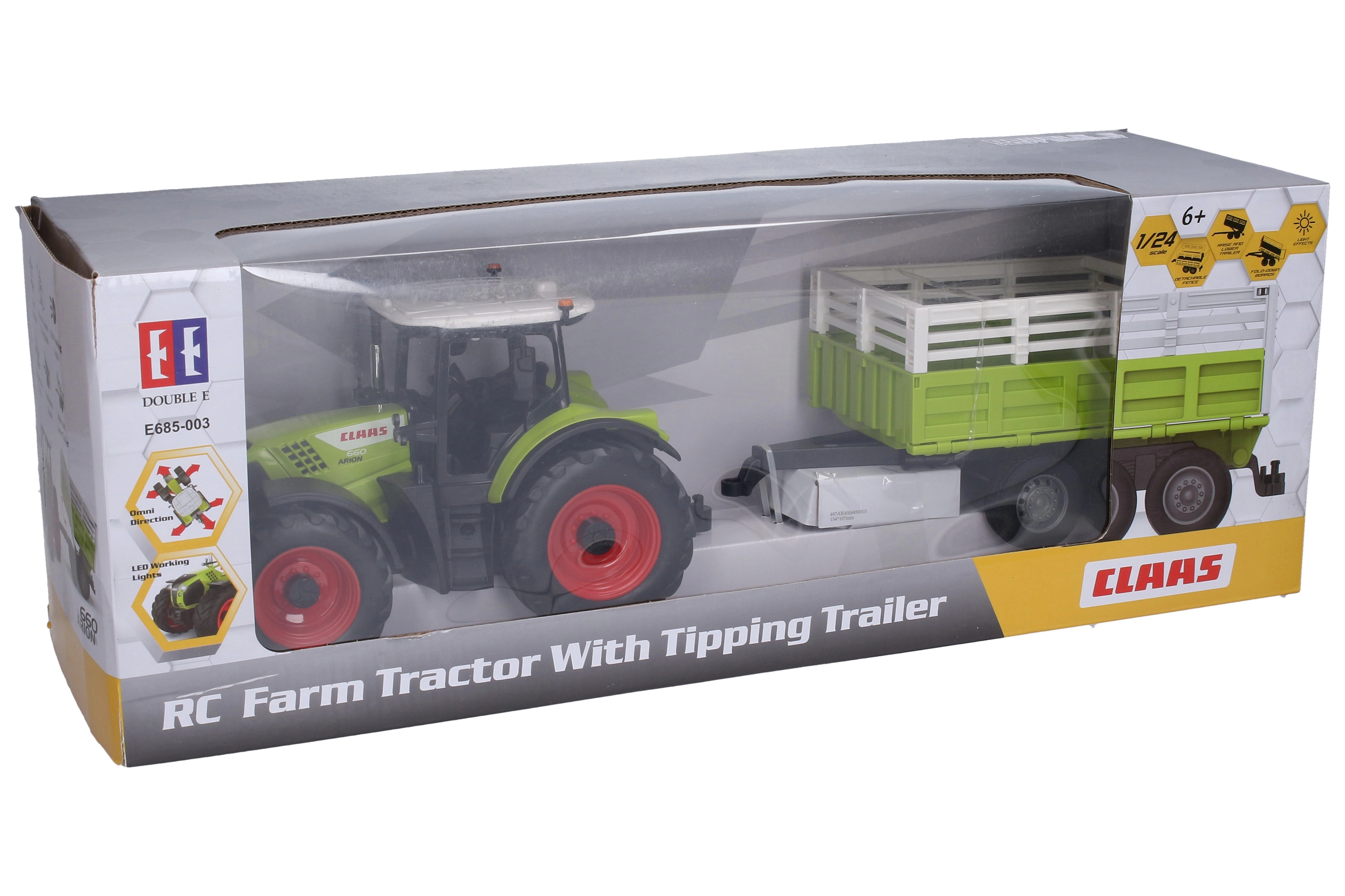 Naudi realistlikku talulusti mudeliga Claas traktor haagisega kaugjuhtimisega, pikkus 43,6 cm. Tugev ehitus, lihtne juhtimine ja detailne disain rõõmustavad nii väikseid kui suuri tehnikasõpru.