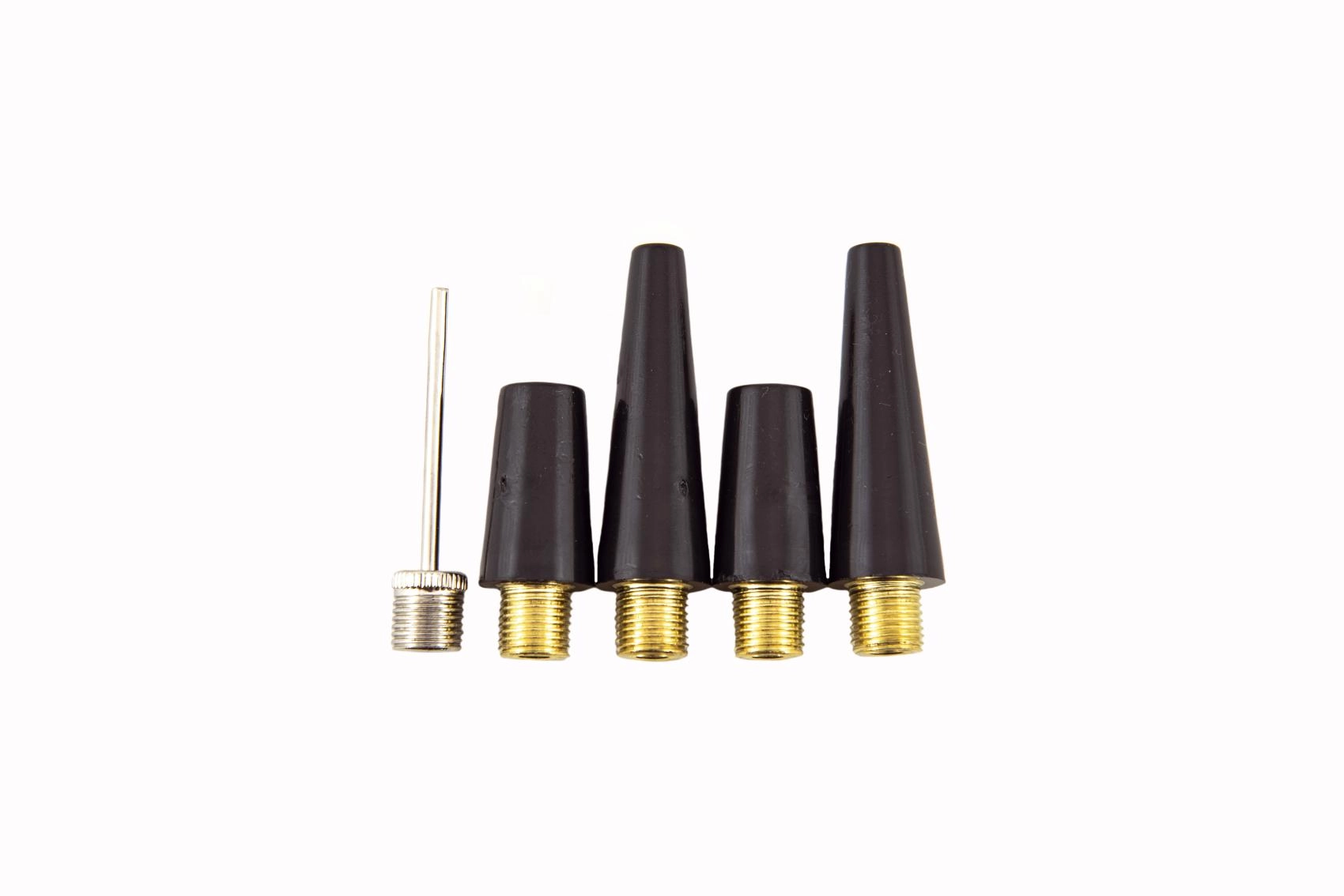 Otsikute komplekt, sh pallinõel ja koonilised düüsid, katab pallide, mänguasjade ja madratsite täitmise – piisab keerata külge ja alustada.