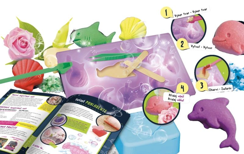 Avasta koduse kosmeetika võlu selle meremaailma teemalise seebitegemise loovkomplektiga. Pakendis on kõik vajalik: seebivormid, värviessents, lõhn, glütseriinilaastud, puitspaatel ja mõõtenõu – ideaalne algajatele ja loovatele lastele täiskasvanu järelevalvel.