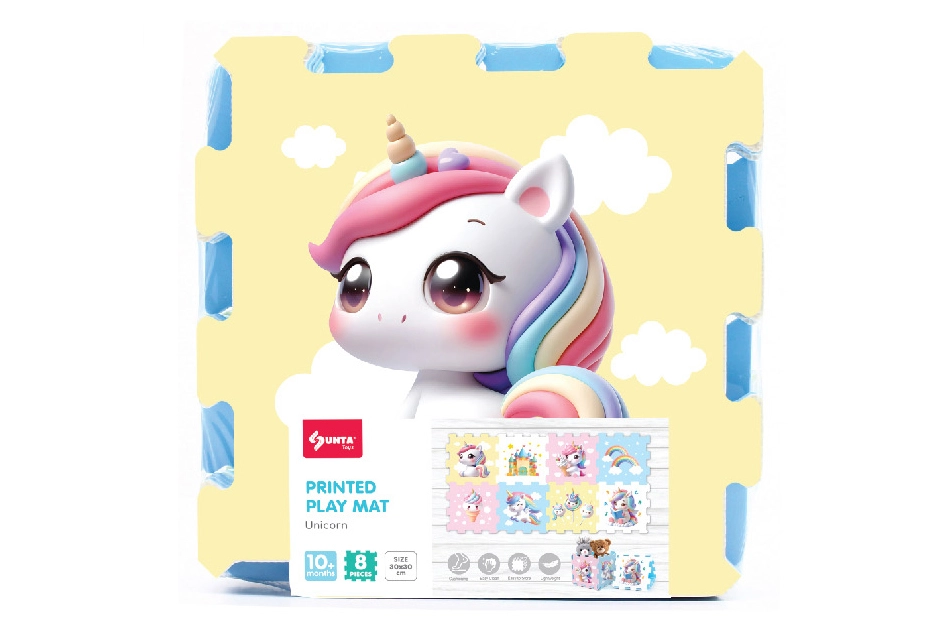 Too lastetuppa rõõmu mängulise ja ohutu pehmete vahuklotside komplektiga ükssarviku motiiviga. 8-osaline komplekt mõõtudega 30 × 30 × 1 cm sobib mängimiseks, ladumiseks ja alusmatiks. Kerged, pehmed ja kergesti puhastatavad tükid kaitsevad külma eest ja summutavad lööke.