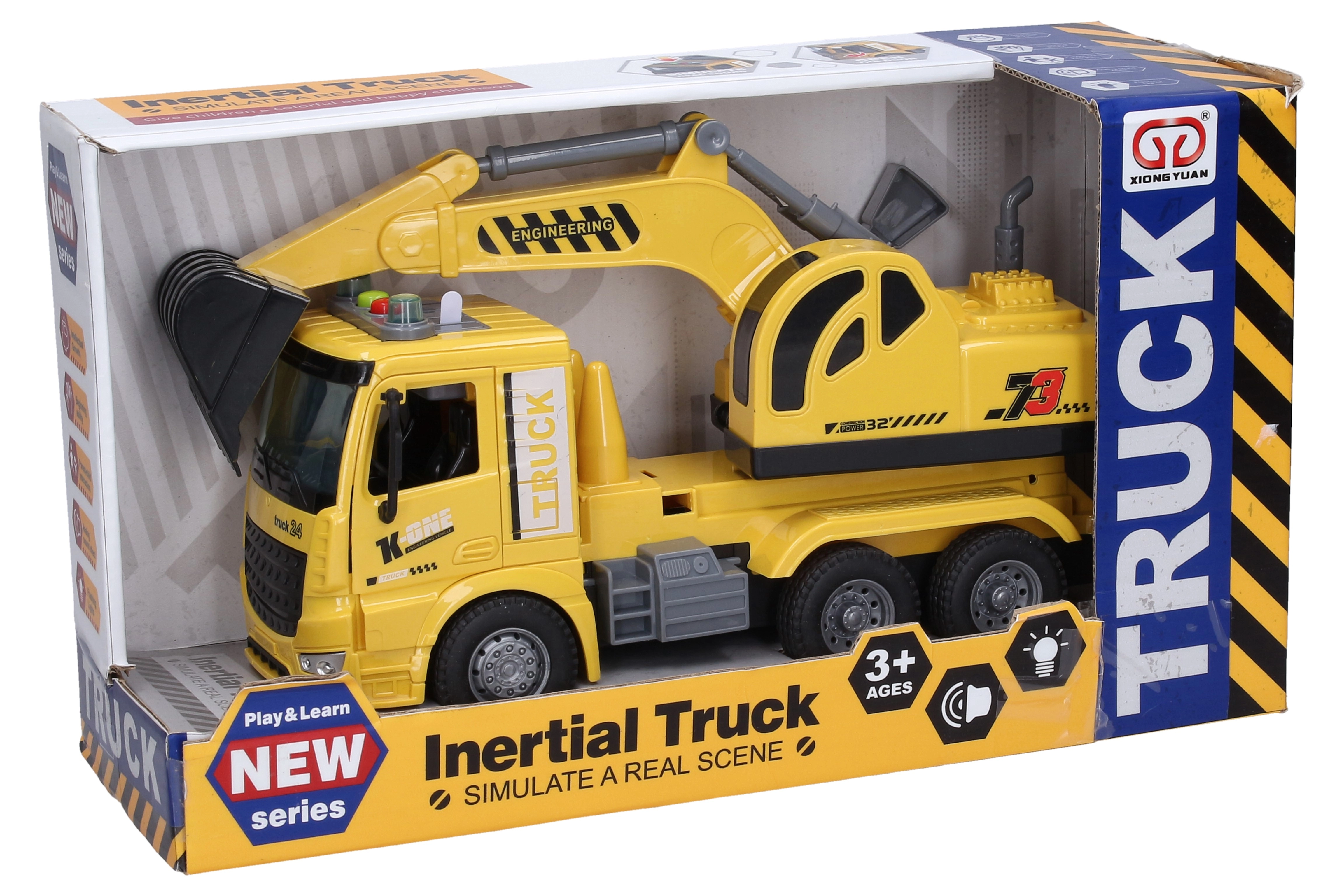 See detailselt viimistletud 28 cm pikkune ehituskaevur on ideaalne mänguasi kõigile väikestele ehitusmasinate fännidele. Hooajõu mehhanism tagab sujuva liikumise, samal ajal kui katusenupud aktiveerivad realistlikud mootori-, kaevamise-, tagurdamise- ja signaalhelid, mida saadavad valgusefektid.