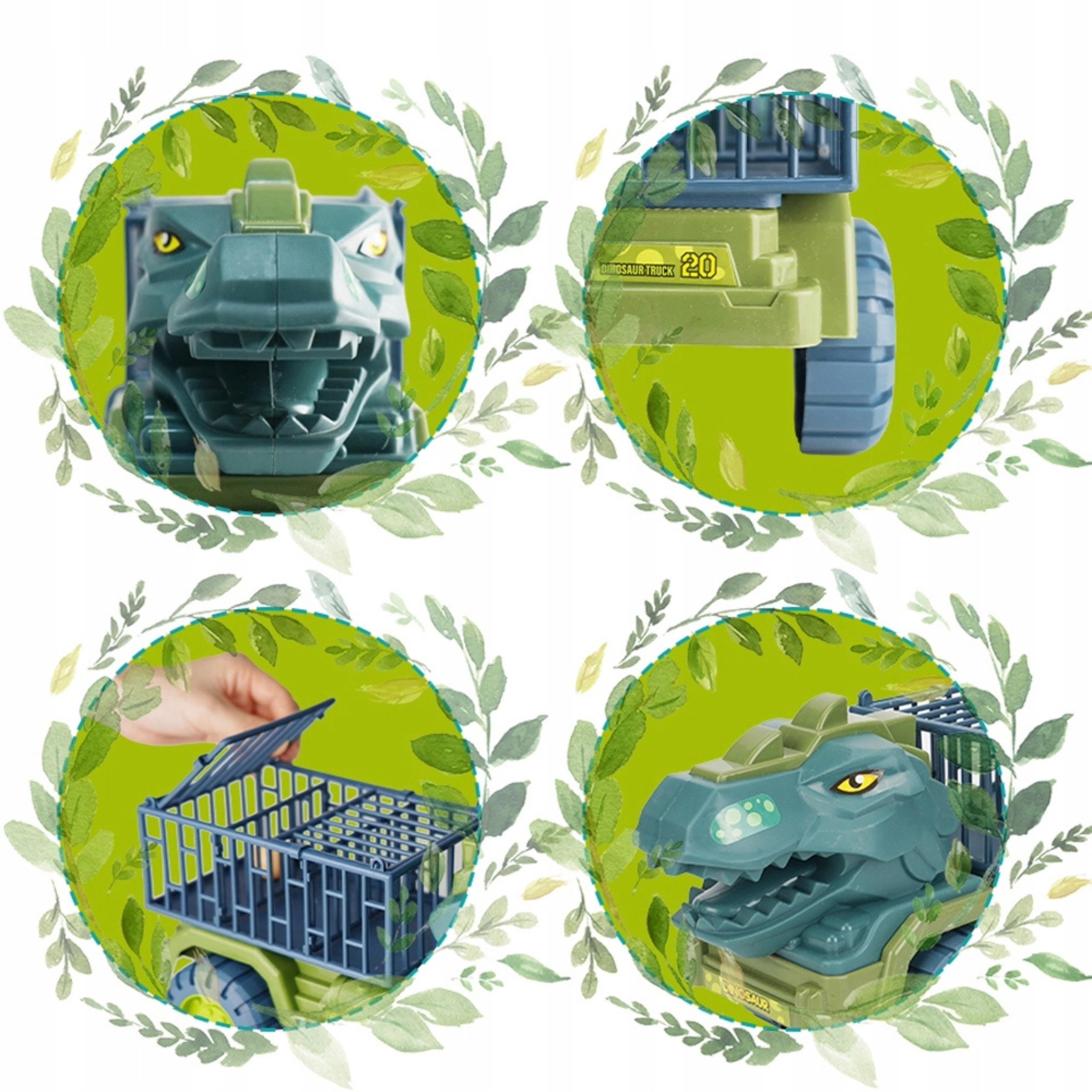 Brändi Woopie dinosauruskujuline transporter ühendab eelajalooliste olendite maailma ja võimsad masinad. Lapsi köidab realistlik välimus “naha” tekstuuri, hari, küüniste ja T‑REX‑i ilmeka lõuaga. Avatavad lattribad ja avar veoruumi platvorm kutsuvad kaupa paigutama ja tegema action’irohkeid stseene.