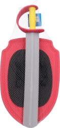 Lõbus komplekt väikestele rüütlitele: vahust mõõk ja kilp punases värvitoonis turvalisteks duellideks ja loovaks mänguks. Kerge, pehme ja turvaline materjal sobib suurepäraselt lastele, 57 cm pikkune mõõk ja 27,5 × 41,5 cm kilp istuvad hästi kätte ja toetavad laste fantaasiat.