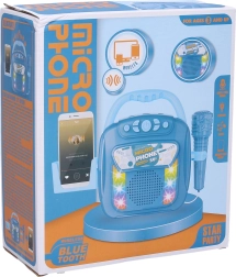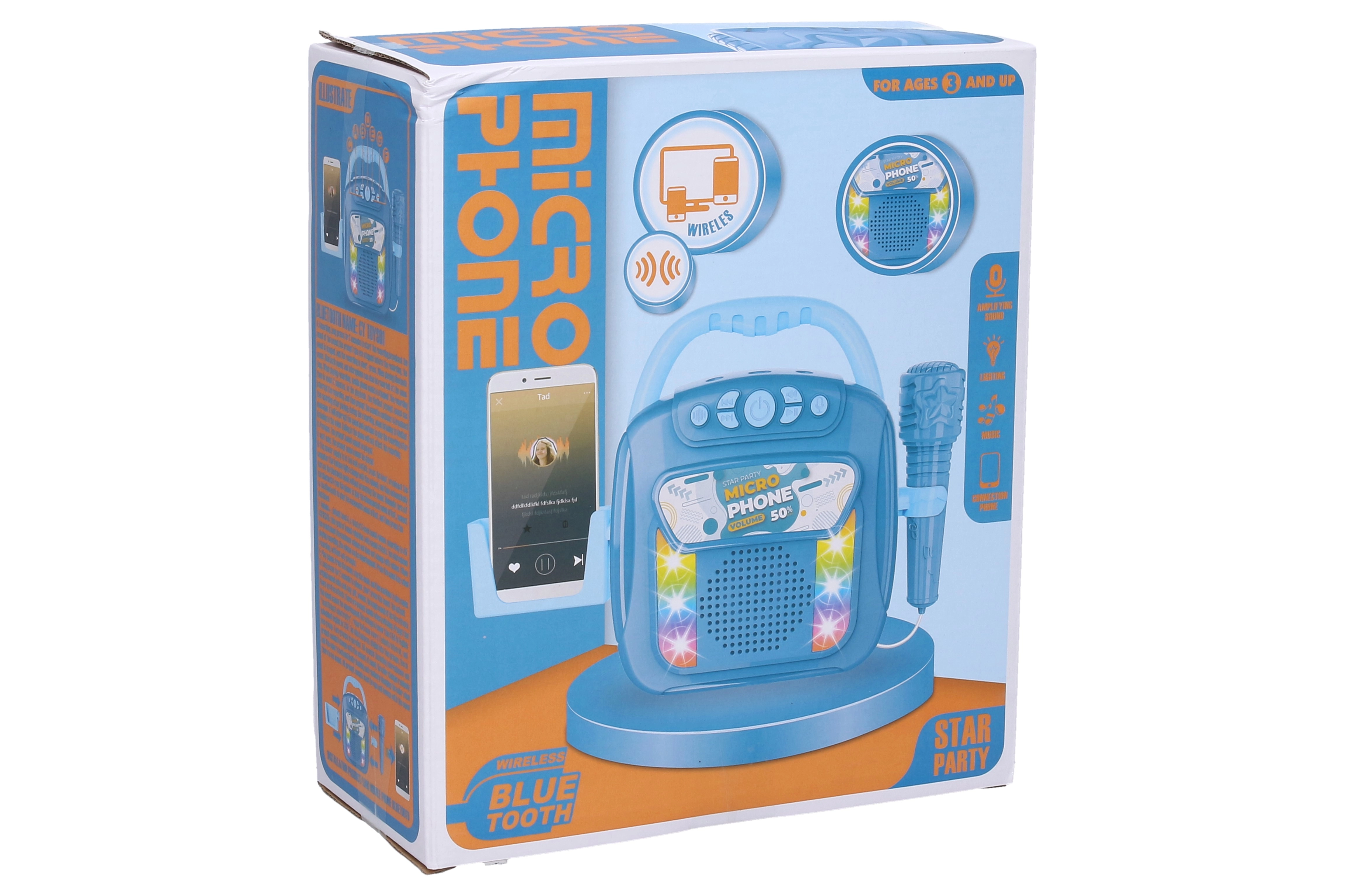 Kaasaskantav muusikakast mikrofoniga ja Bluetooth-traadita ühendusega rõõmustab nii lapsi kui täiskasvanuid. See pakub valgusefekte, võimalust salvestada, lihtsat helitugevuse reguleerimist ja lugude vahetamist. Komplektis on USB-laadimiskaabel, hoidik mobiiltelefonile ja 3,7 V akupakk – kõik kohe kasutusvalmis.