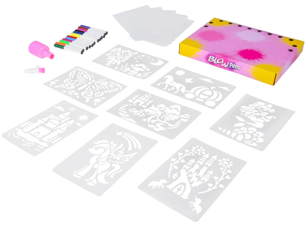 See ainulaadne kunstikomplekt muudab tavalise joonistamise elamuseks. Sisesta vildikas käsipumbasse, suuna šabloonile ning piserda värvi kergete vajutustega. Nii tekivad efektsed täpilised ja õrnalt pihustatud motiivid. Värve saab töö käigus vabalt vahetada, seega on iga pilt täiesti originaalne.