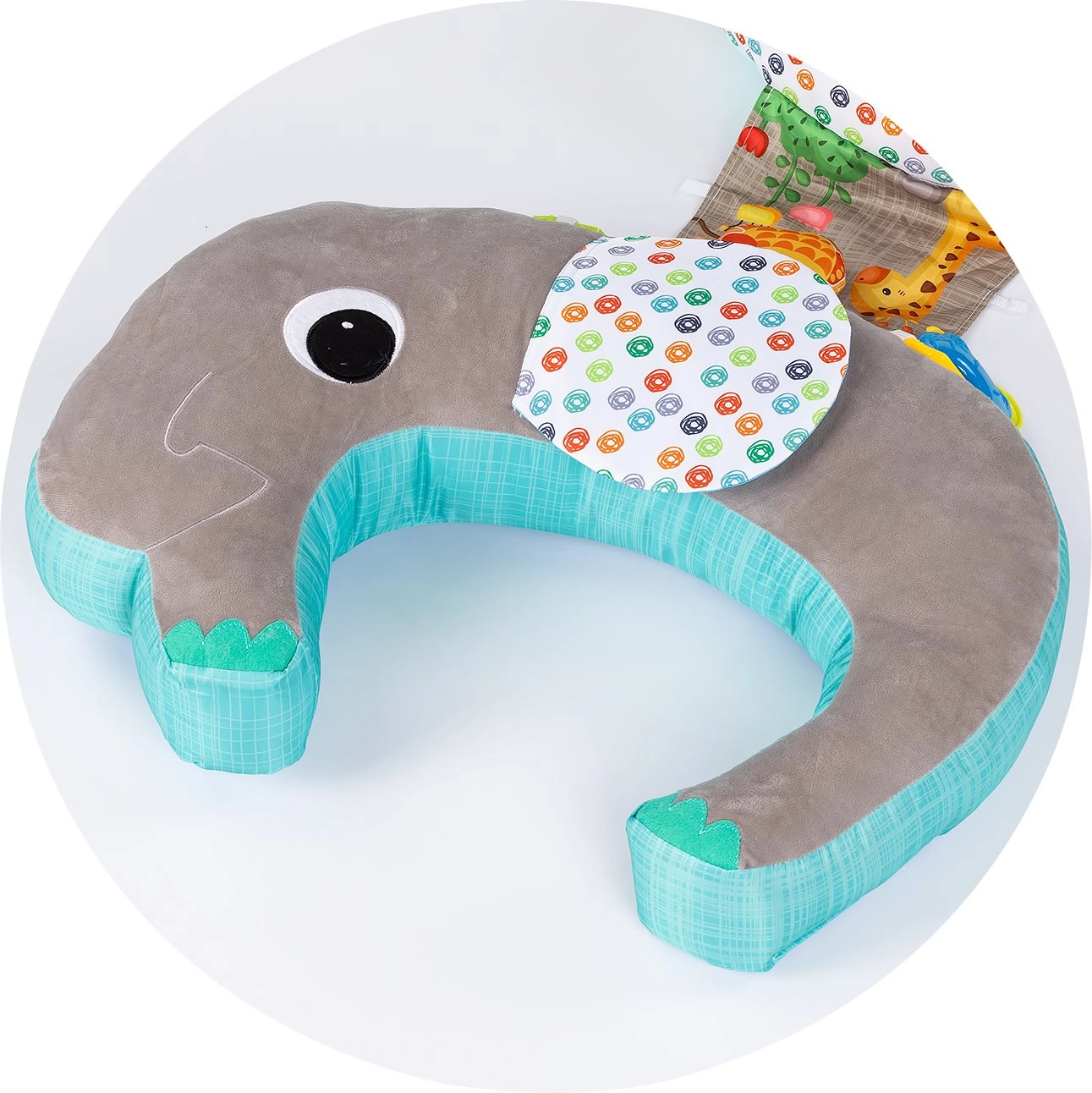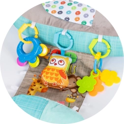 - 5-ühes kasutus – tugi kõhuliolekul, selili asend, tugi istumisel, lõõgastus ja mänguline stimulatsioon.