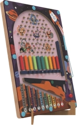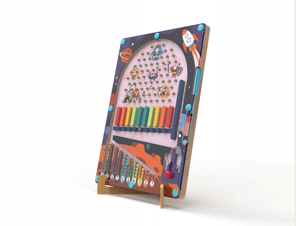 See originaalne kosmosekujundusega puidust mäng ühendab pinballi tempoka lõbu nutika punktiarvestusega magnetkuulide abil. Lapsed püüavad väljalaskjat kasutades tabada valitud välju, jälgida skoori ning parandada oma hinnangut ja täpsust. Selge mänguvälja paigutus lihtsustab tulemuste hindamist ja motiveerib uutele katsetele.