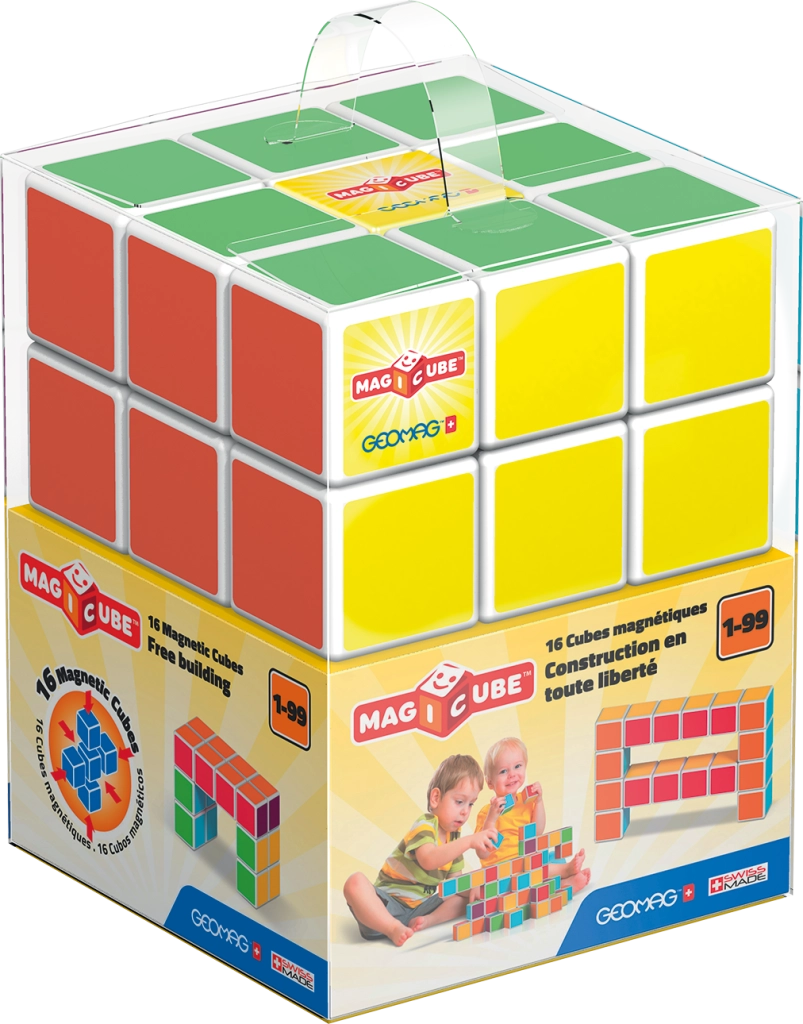 Avasta magnetehituse võlu Geomag Magicube’iga. Uuenduslik süsteem võimaldab kuubikutel üksteist tõmmata kõigilt külgedelt, nii et lapsed saavad kergesti ehitada torne, kujundeid ja lihtsaid mustreid. Erivärvilised küljed toetavad visuaalset taju ja värviõpet, samal ajal kui kuubikute käsitlemine arendab silma–käe koordineerimist.