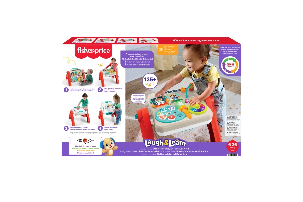 Interaktiivne FISHER-PRICE 4-ühes mängulaud toob nutika õppimise mängu kaudu igasse arenguetappi. Lapsi köidab “kunstniku” paneel, mis õpetab numbreid, värve ja kujundeid, värviline pöörlev rõngas muusikaga, pööratav raamatuke, helmestega liist ning spinner, mis arendavad peenmotoorikat. Smart Stages režiime saab hõlpsasti kohandada vastavalt lapse vanusele ja arengule.