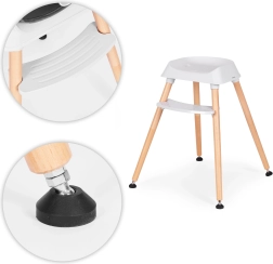 5-punkti vööd, jalgevahest läbiv turvaelement ning stabiilsed puidust jalad libisemisvastaste otstega kaitsevad last libisemise eest ja tagavad maksimaalse stabiilsuse.