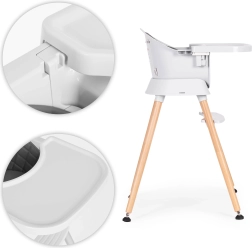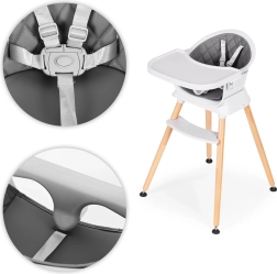 Stiilne ja praktiline ECOTOYS 6-ühes söögitool kohandub suurepäraselt igapäevaste rituaalidega – esimestest lisatoitudest kuni iseseisva söömise ja mängimiseni. Tänu läbimõeldud konstruktsioonile saab selle hõlpsasti muuta kõrgeks söögitooliks, madalaks tugitooliks, istmeks/boosteriks tavalisele toolile, eraldiseisvaks istmeks ilma jalgadeta, baaritooliks või madalaks taburetiks. Hoolikalt vormitud iste pehme polstri ja jalatoega toetab ergonoomilist istumist.