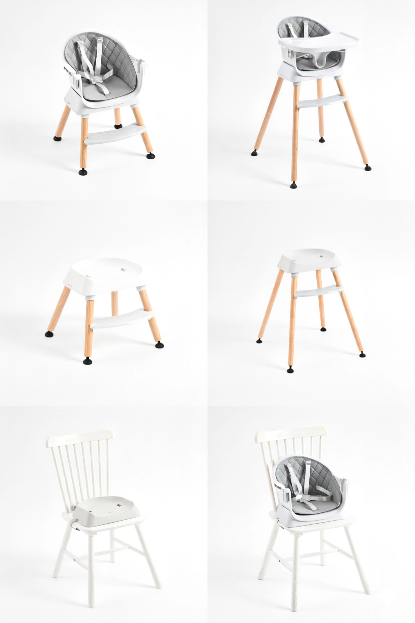 Kõrge söögitool, madal tugitool, booster, iste ilma jalgadeta, baaritool ning madal taburet – lahendus, mis kasvab koos lapsega ja säästab nii ruumi kui ka raha.