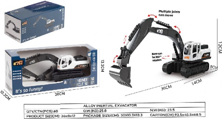 See detailirohke ekskavaator ühendab metallosad kvaliteetse plastiga pikaealiseks ja realistlikuks mänguks. Kabiin pöörleb 360°, nool ja metallist kopp on täielikult liigutatavad, nii et lapsed saavad hõlpsalt materjali koguda ja teisaldada.