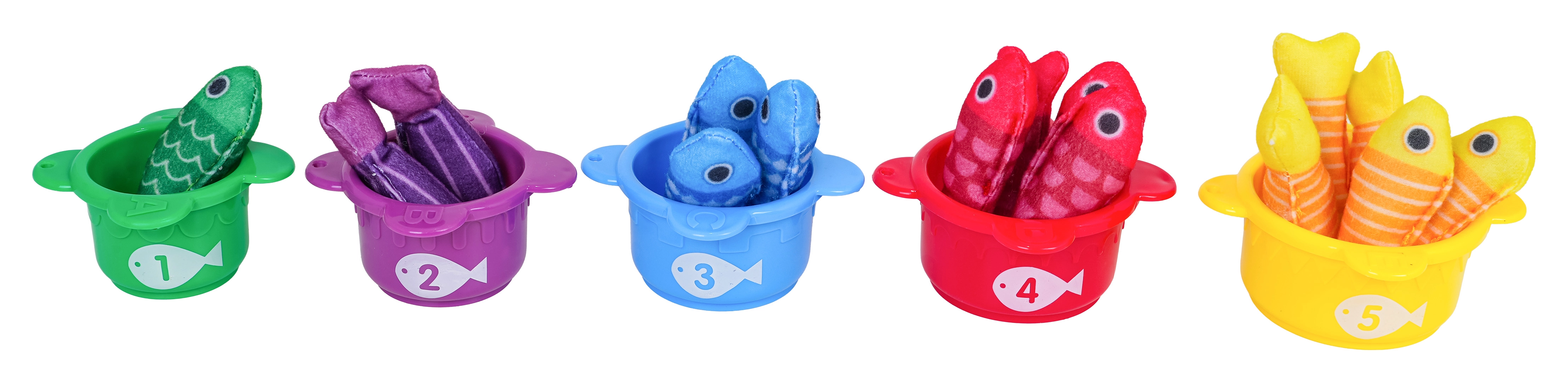Viis topsi numbritega 1–5 ja vastavates värvides kalad õpetavad lapsi värvi järgi sorteerima ning lihtsat loendamist. Suurepärane loogika ja eelkoolioskuste arendamiseks.