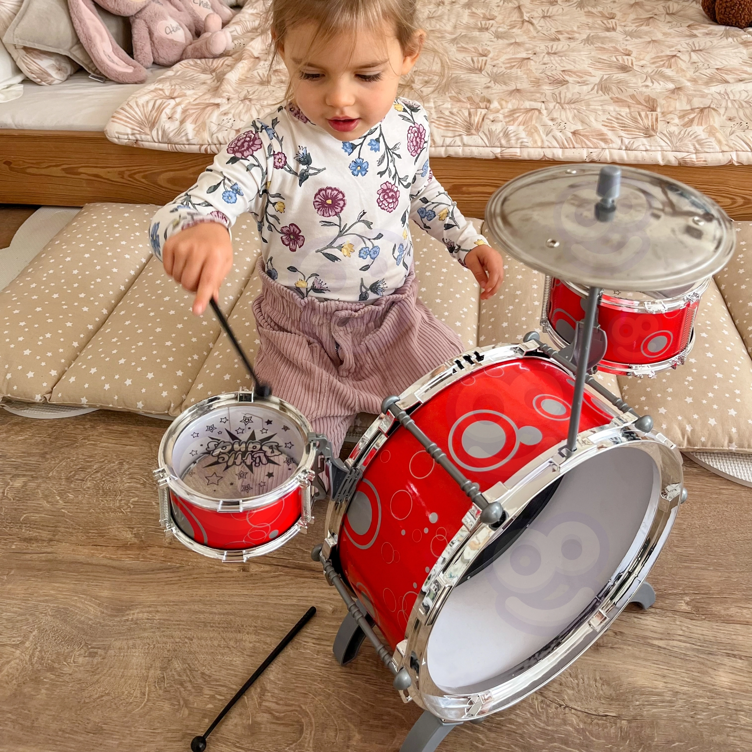 WOOPIE laste trummikomplekt pakub lõbusat ja turvalist viisi tutvustada lastele muusikat. Kompaktne trummisett sisaldab kesktrummi pedaaliga, külgmist tom-trummi, taldrikut ja pulki – kõik on loodud väikeste käte jaoks ning mugavaks mängimiseks. Tänu lihtsale kokkupanekule on komplekt hetkega kasutusvalmis.