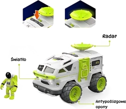 Astuge koos lastega kosmoseavastuste maailma Woopie sõidukiga – detailne mudel, millel on pöörlev radar, avatav esikilp ja valgus- ning heliefektid. Tugev ABS-konstruktsioon ja kummist maastikurehvid tagavad suurepärase haarduvuse ja vastupidavuse igapäevasel mängimisel. Komplektis on astronaudi figuur, mis mahub kabiini, ning patareid koheseks mängurõõmuks.