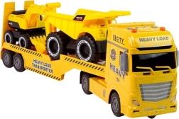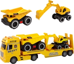 Avastage suur ehituskomplekt, mis rõõmustab kõiki väikeseid töömasinate fänne. Puksiirauto liikuva laadimisrambiga laeb kaasasolevad masinad hõlpsalt peale ja maha. Realistlikud vilkuvad tuled ning mootori-, signaali- ja sireenihelid, mida käivitatakse nuppudest, lisavad mängule autentsust. Ekskavaatoril on käsitsi juhitav poom kopaga ning kalluril ülesklapitav kast “materjali mahalaadimiseks”.