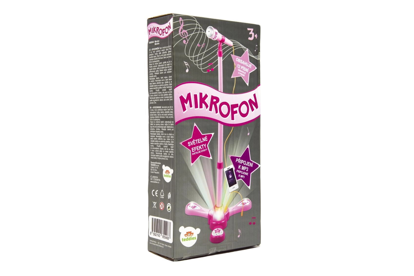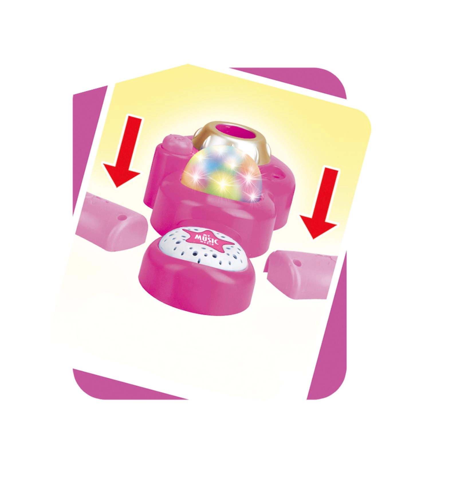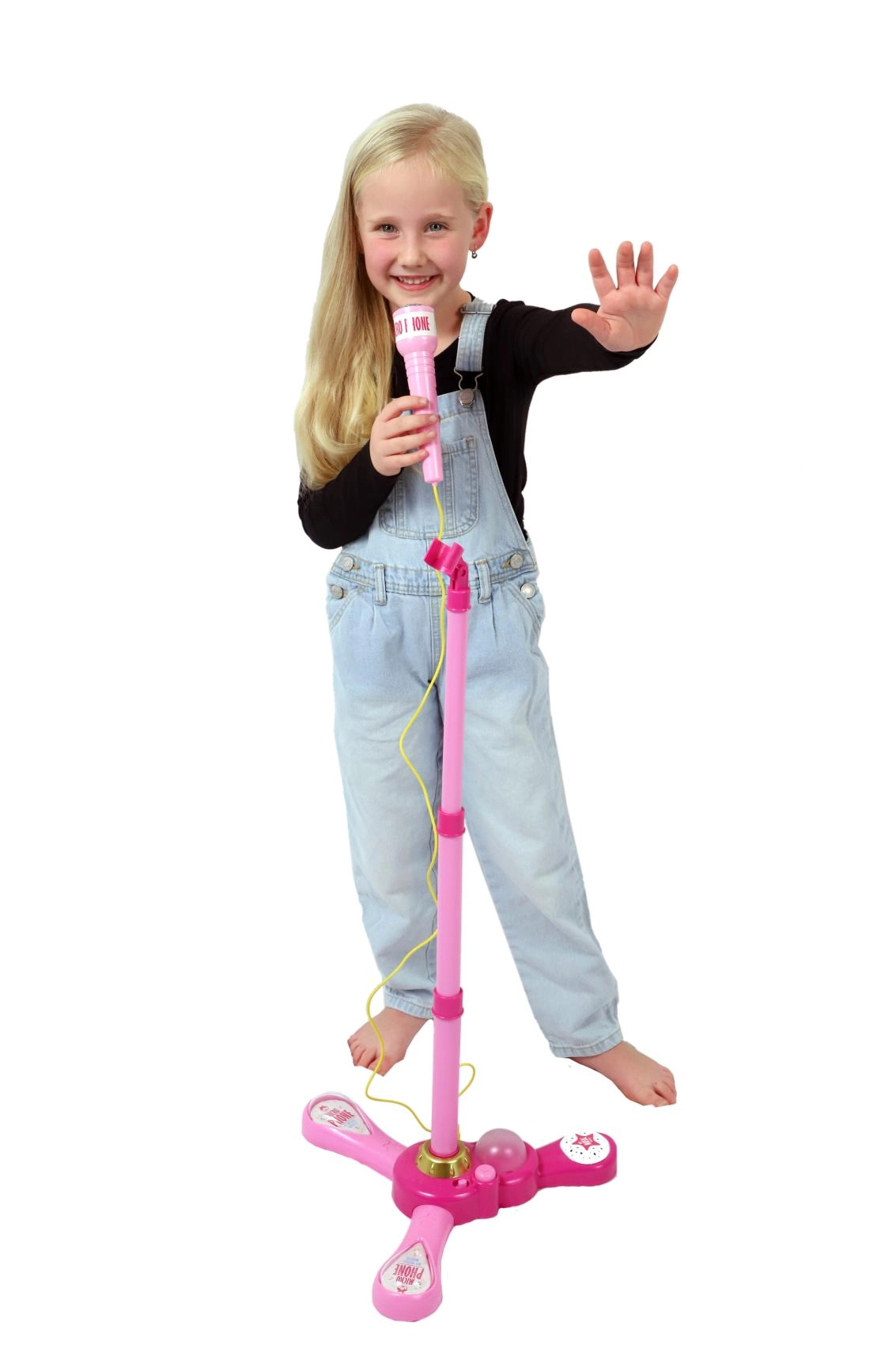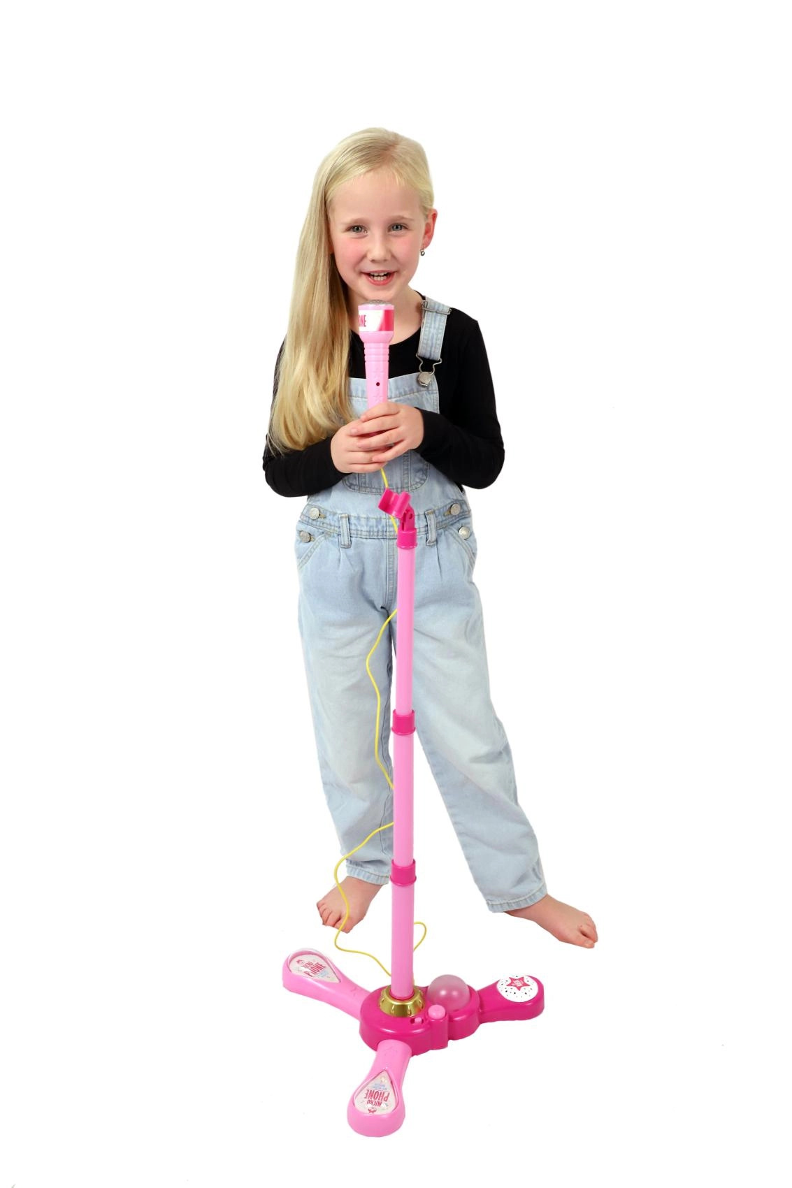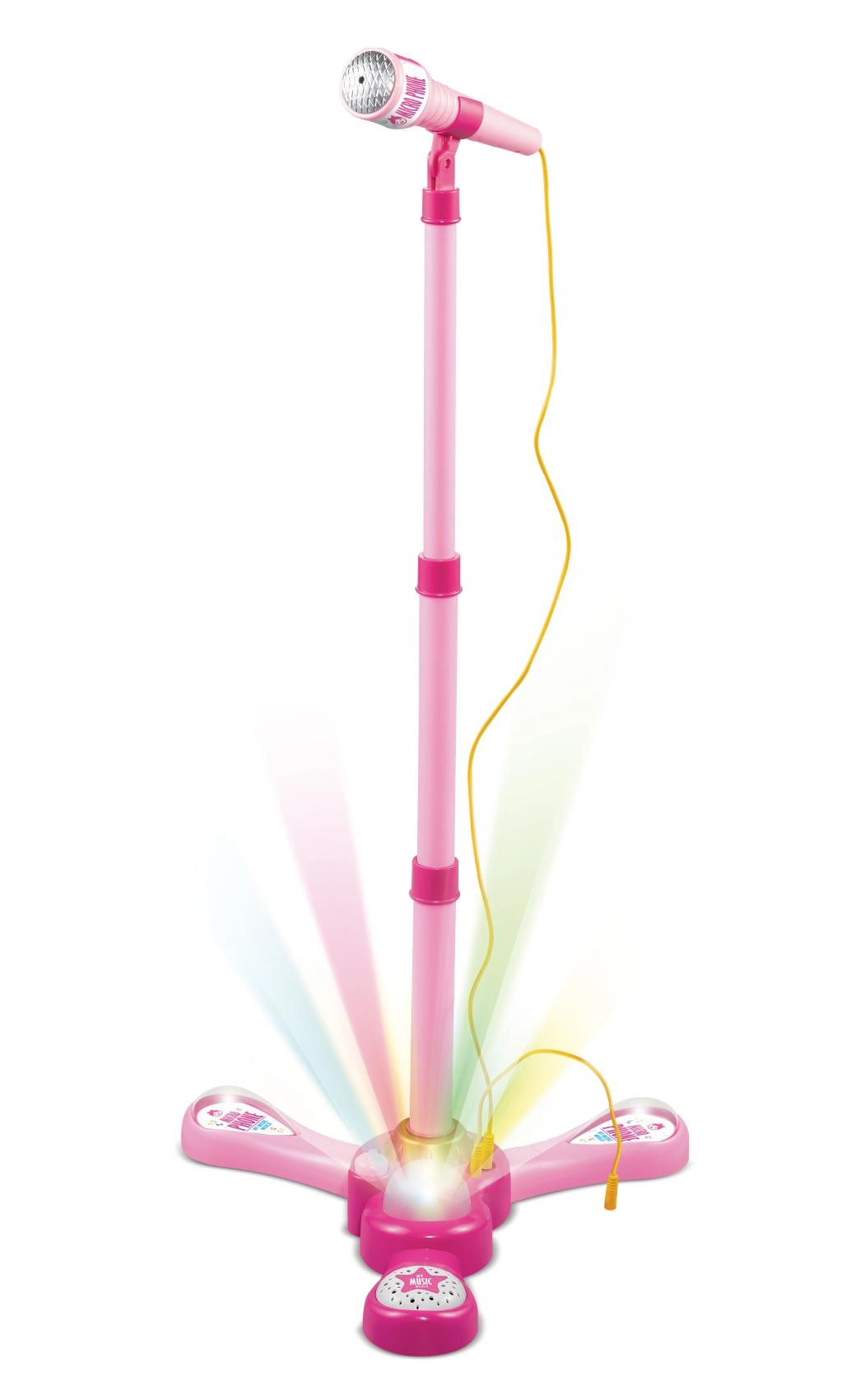 Roosa karaokemikrofon statiiviga muudab iga lastetoa lavaks. See pakub 12 sisseehitatud laulu, värvilisi valgusefekte ning võimalust ühendada MP3-mängija või telefon. Tänu reguleeritavale kõrgusele 40–80 cm kasvab see koos lapsega ja sobib suurepäraselt väikestele lauljatele alates 3. eluaastast.