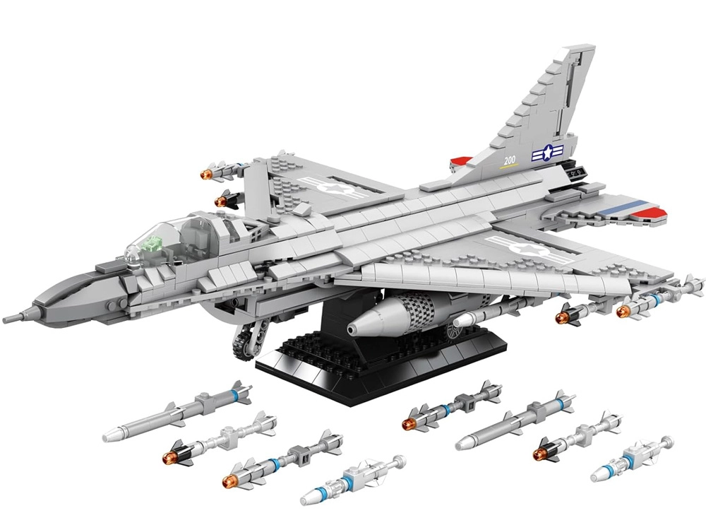 Ehita ikooniline hävituslennuk F-16 Fighting Falcon 1337 detailist ja esitle seda elegantsel alusel. Detailne mudel kvaliteetsest ABS-plastist pakub liikuvaid osi, sh avatavat telikut, ning võimalust relvastust vahetada efektsete seadistuste loomiseks. Suurepärane nii kollektsiooni eksponaadiks kui ka loovaks mänguks.