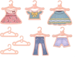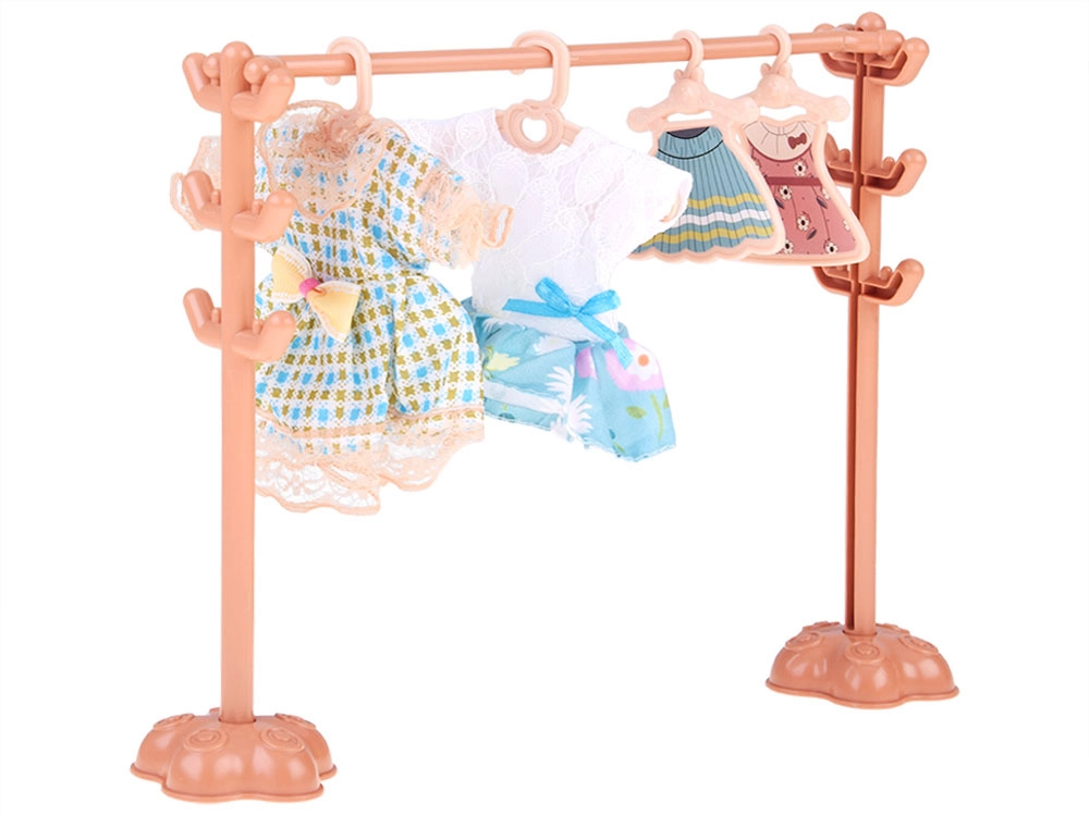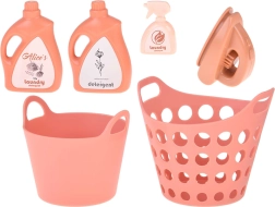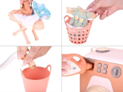 Komplekti kuuluvad korvid, „pesuvahendi” pudelid, triikraud triikimislauaga, nagi ning komplekt riidepuid ja nukkude rõivaid – kõik vajalik pesemiseks, kuivatamiseks ja triikimiseks.