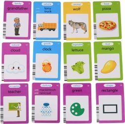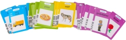 Kokku 224 pilti teemadel: loomad, sõidukid, esemed, toit, köögiviljad, puuviljad, perekond, värvid, kujundid, ametid, riided ja loodus – ideaalne sõnavara arendamiseks.