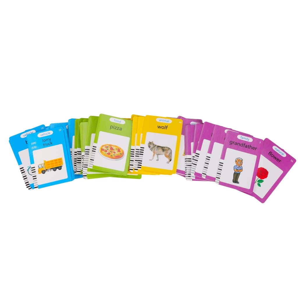 Õppimine on selge ja motiveeriv: 112 kahepoolset kaarti (224 pilti) katavad teemad nagu Loomad, Sõidukid, Esemed, Toit, Köögiviljad, Puuviljad, Perekond, Värvid, Kujundid, Ametid, Riided ja Loodus. Praktiline juhtimine pakub funktsioone taasesitus/uuesti kuulamine, helitugevuse reguleerimine, kustutamine ja kustutuse lukk. Kerge konstruktsioon ja USB-laadimine tagavad mugava kasutuse kõikjal.