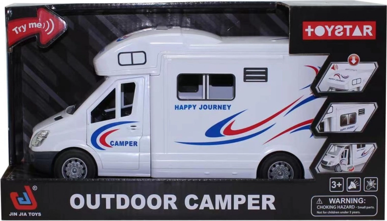 Avasta teel olemise rõõm selle valge interaktiivse haagissuvilaga lastele alates 3. eluaastast. See pakub valgus- ja heliefekte, avatavaid külg- ja tagauksi ning katust, kummirehve ja power friction veosüsteemi sujuvaks sõiduks. Valmistatud kvaliteetsest ja ohutust plastist, komplektis on patareid.