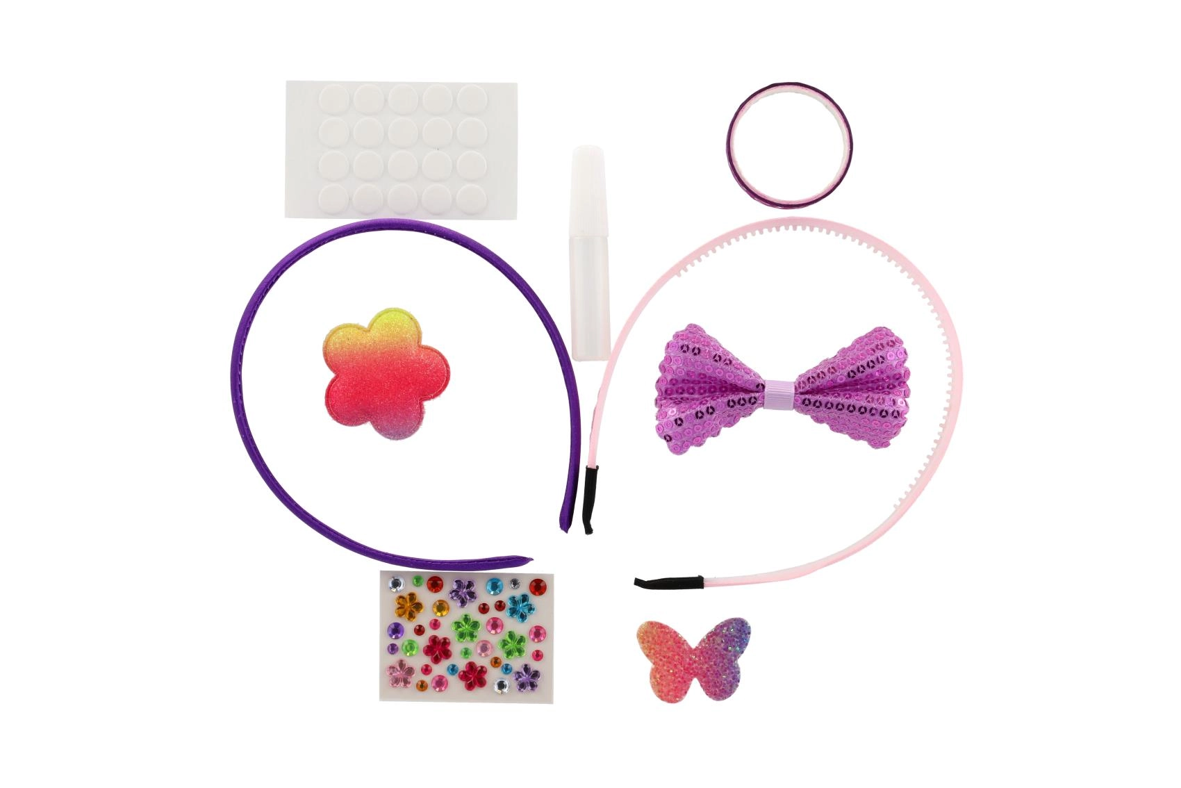 Isekleepuvad täpid ja väike liim teevad töö lihtsaks ka noorematele lastele. Kaunistused püsivad kindlalt ning peapaelad on hetkega kandmiseks valmis.