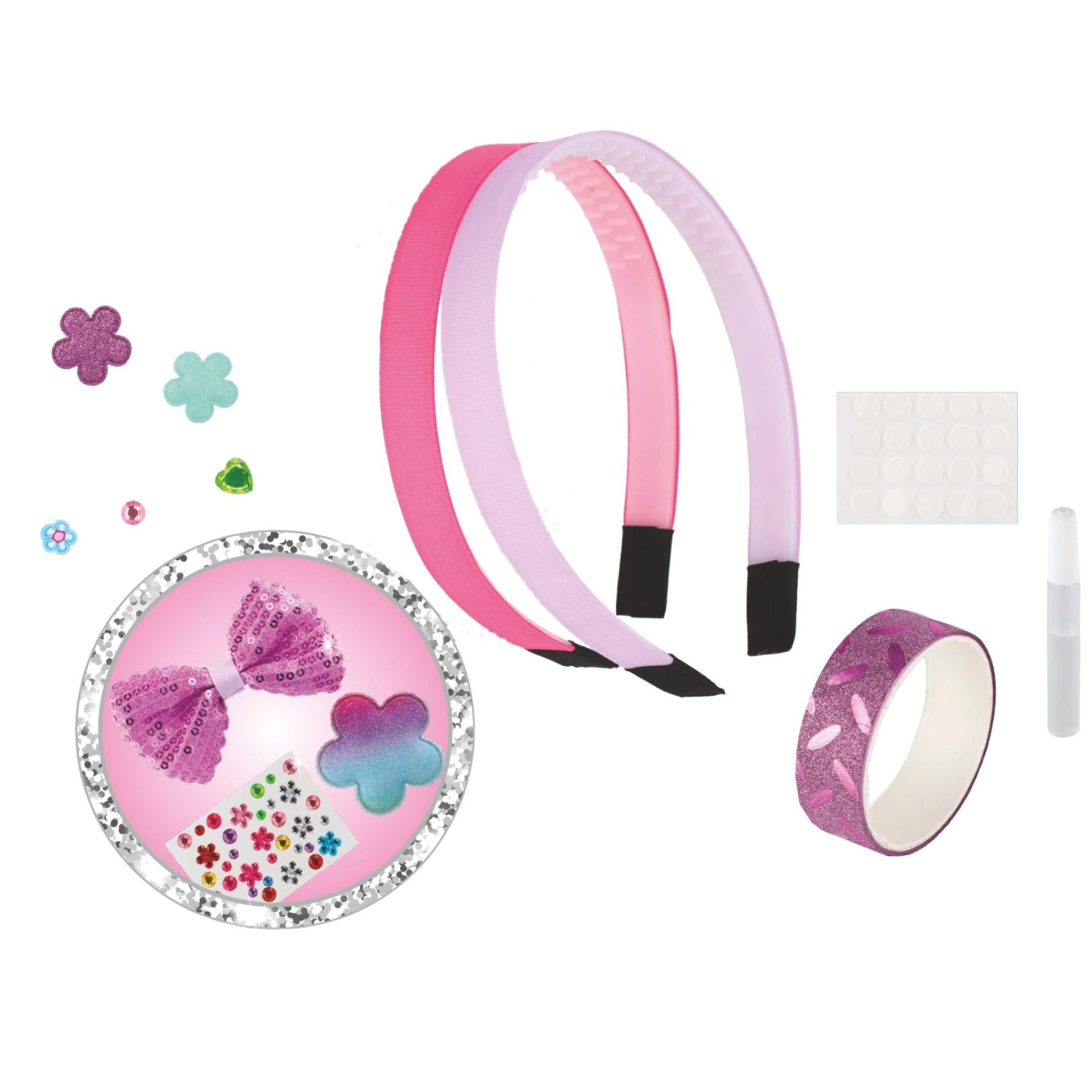 Loo oma ainulaadsed peapaelad selle lõbusa komplektiga lastele alates 5. eluaastast. Pakendis on 2 peapaela ja erinevad kaunistused – sädelevad aplikatsioonid, kivikesed, isekleepuvad täpid ning liim – kõik lihtsaks meisterdamiseks. Valmistamine on lihtne, lõbus ja arendab suurepäraselt fantaasiat, loovust ja peenmotoorikat.