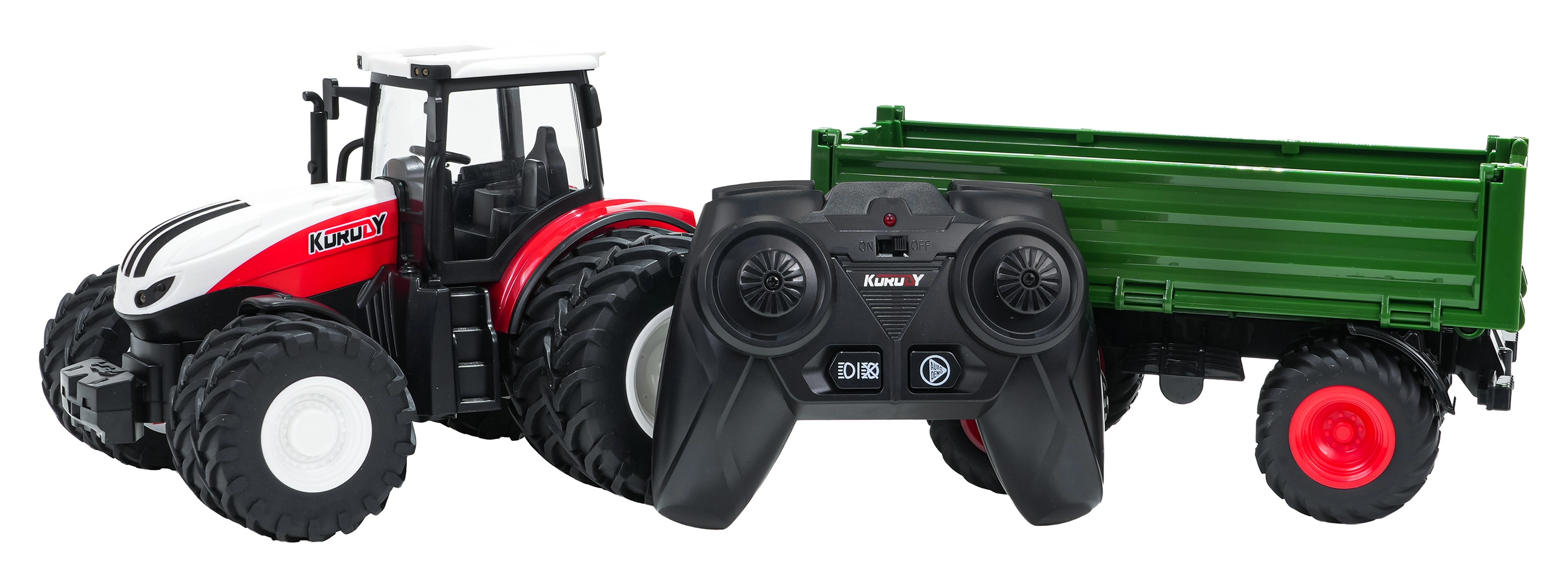 Stabiilne 2,4 GHz sagedus tagab tundliku juhtimise ilma häireteta. Traktor sõidab edasi, tagasi, vasakule ja paremale ning saab tänu suurtele kummiratastele hakkama erinevatel pindadel.
