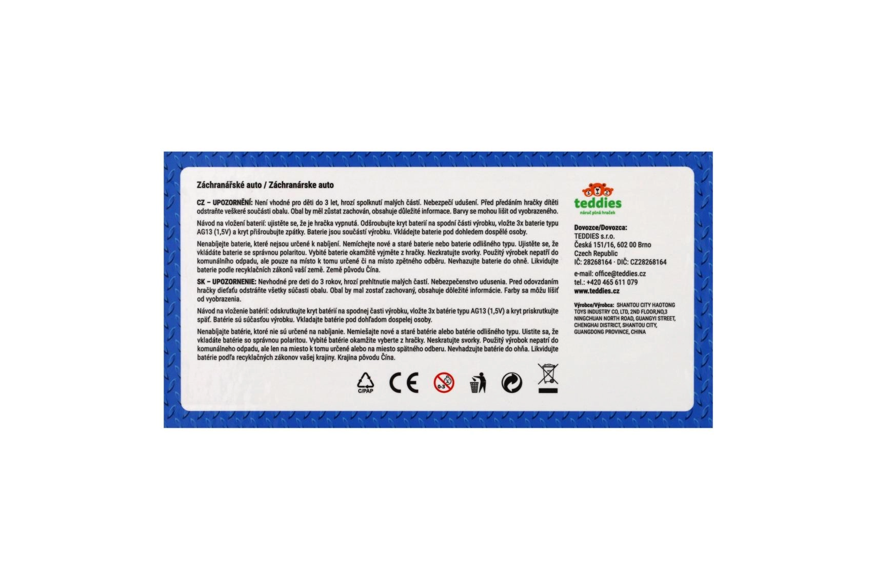 14,5 cm pikkune plastist kiirabi rõõmustab kõiki väikseid päästjaid. Tänu inertsveole piisab väikesest tõukest ja auto sõidab ise edasi. Realistlikud valgus- ja heliefektid ning avatavad uksed toetavad loovat mängu ja kujutlusvõimet. Sobib lastele alates 3. eluaastast.