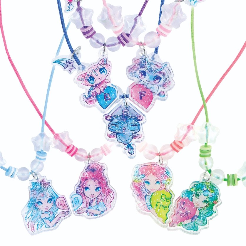 Loo ehted, mis jutustavad teie sõpruse lugu. Kombineeri 98 erinevat helmest, lisa liimitavaid kivikesi lisasäraks ning kinnita kõik turvaliselt ühendus-rõngastega. Komplekt arendab loovust, peenmotoorikat ja esteetilist taju.