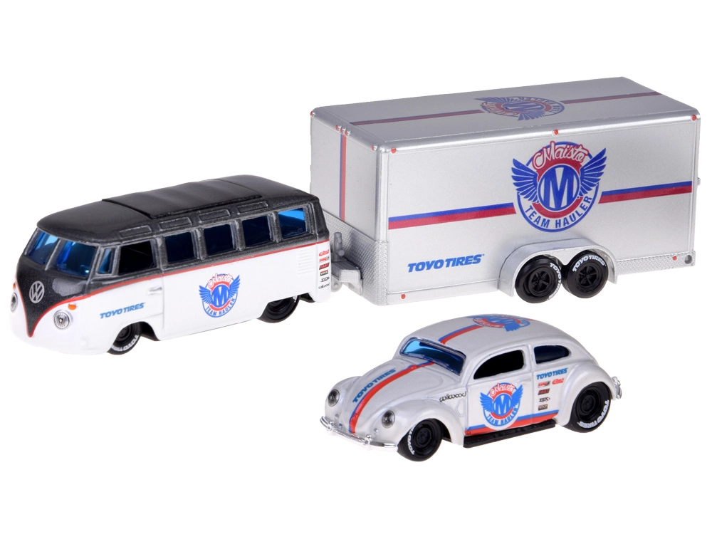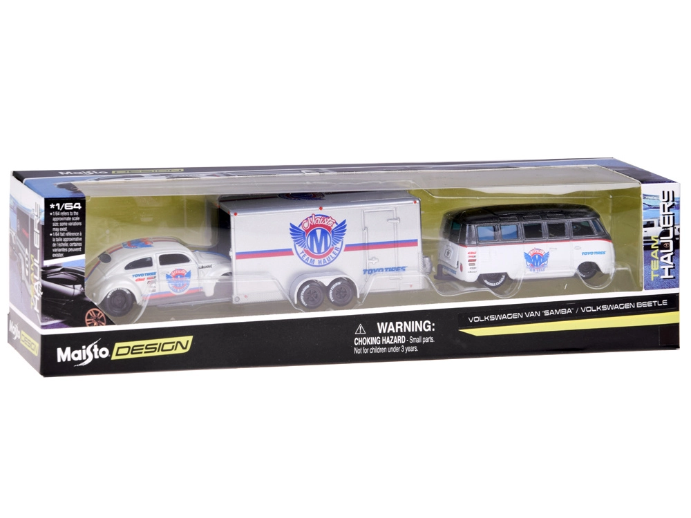 Volkswagen Van Samba on varustatud veokonksuga haagise ühendamiseks; konksu saab vajadusel eemaldada ning haagise ühendada ja lahti ühendada ilma konksu lahti kruvimata. Terve komplekt sobib suurepäraselt klassikaliste autode entusiastidele, 1:64 mõõtkava kollektsionääridele ja lastele, kes armastavad loovat mängu.