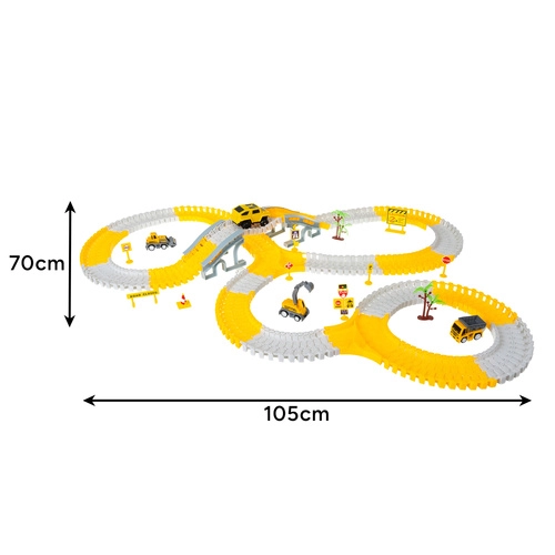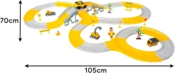 Loo oma ehitusteemaline ringrada – tänu paindlikele, klõpsatavatele tükkidele koostad sirgeid, kurve, silmuseid ja silla. Lapsed saavad pidevalt muuta konfiguratsioone, katsetada uusi trajektoore ning täiendada neid märkide, tõkkepuude ja puudega. Erksad värvid, funktsionaalsed lisad ja patareiga auto tagavad dünaamilise ja köitva mängu.