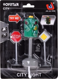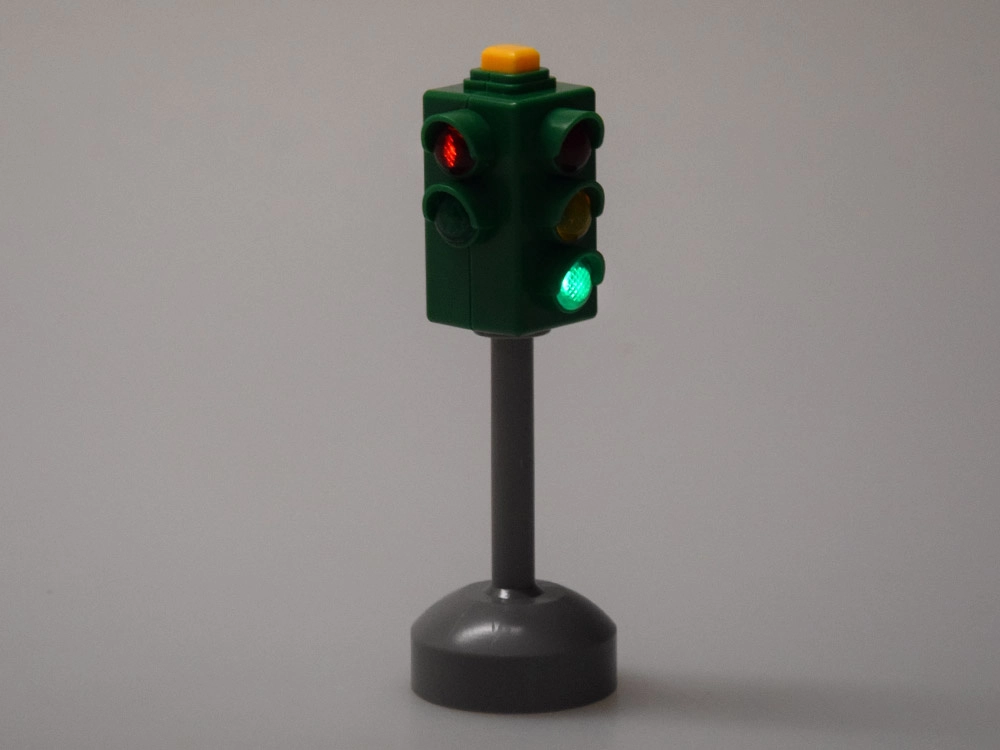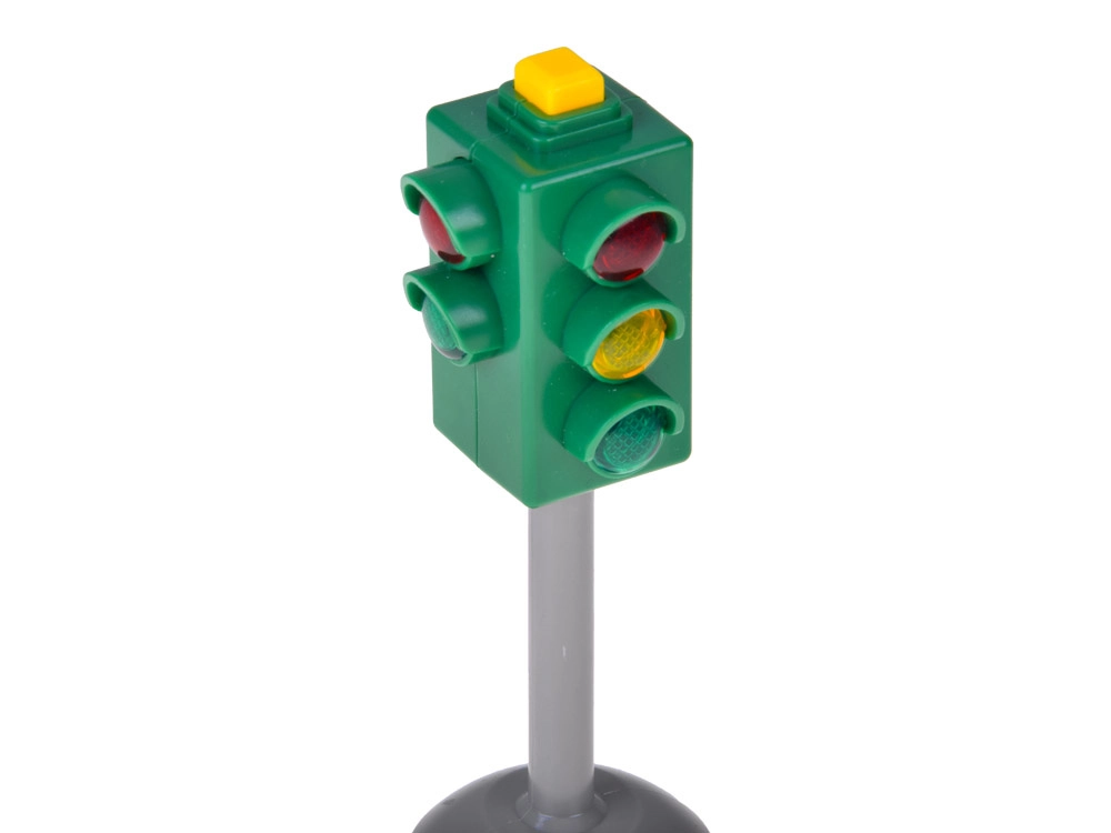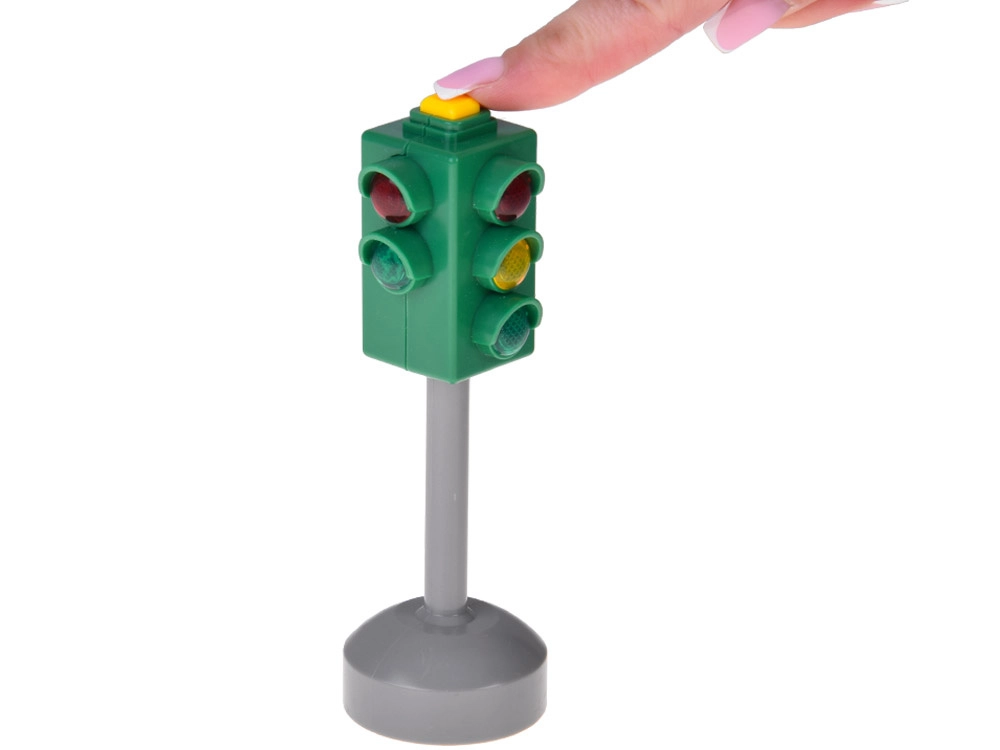 Ülemine nupp aktiveerib tuled ja heli. Lapsed saavad ise vahetada signaale ja harjutada liiklussituatsioone.