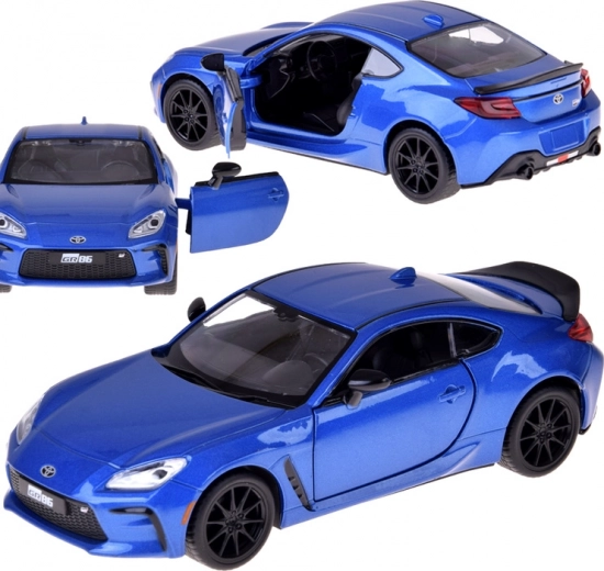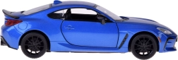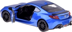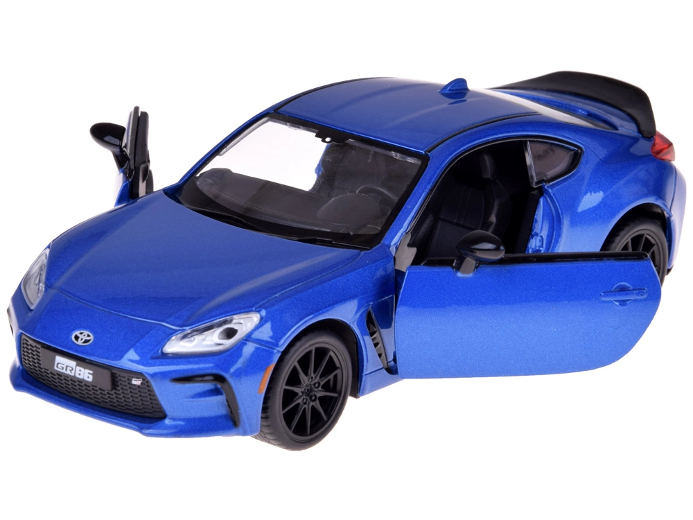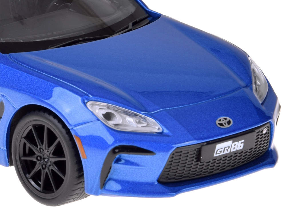 Detailne TOYOTA GR86 mudel atraktiivses sinises metalliktoonis rõõmustab kvaliteetse teostuse ja realistlike proportsioonidega. Metallkere plastist šassiiga ja kummirattad tagavad sujuva ja vaikse liikumise, samas kui avatavad uksed aktiveerivad tuled ning mootori- ja signaalhelid.