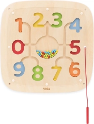 See puidust seinatahvel numbritega 0–9 ühendab lõbu ja õppe. Lapsed juhivad komplektis oleva magnetpliiatsi abil värvilisi kuulikesi tähistatud radadel, seostavad neid numbritega ning harjutavad nii arvutamist kui ka silma–käe koostööd.