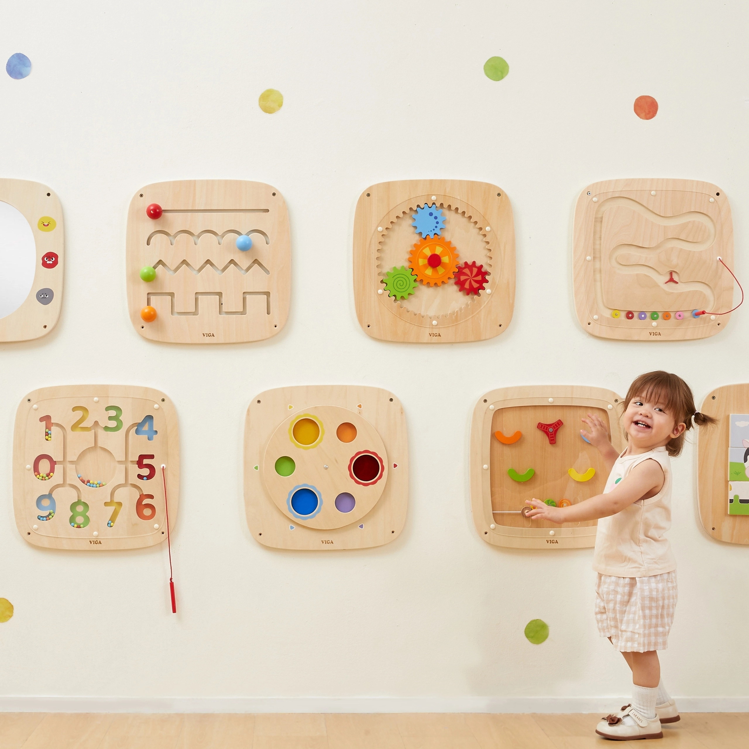 Vastupidav ehitus, sile viimistlus ja seinale kinnitamine tagavad turvalise kasutuse ning ruumisäästu mängutoas, lasteaias ja lastetoas. Ideaalne abivahend alates 2. eluaastast, mis toetab loomulikku uudishimu ja kannatlikkust.