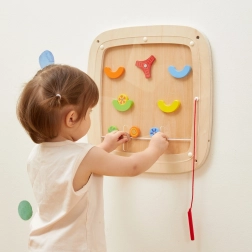 See puidust seinatahvel sobib ideaalselt lastetubadesse, mängutubadesse ja lasteaedadesse – seinale paigaldus säästab ruumi ja tagab turvalise, stabiilse mängu. Lapsed juhivad magnetpliiatsi abil kuulide liikumissuunda, ületavad takistusi ja sihivad punktitsoone, tugevdades loomulikul viisil kannatlikkust, kontsentratsiooni ja koordinatsiooni.