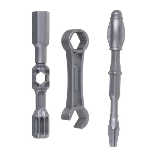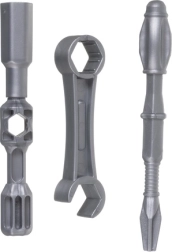 Komplektis on turvalised plasttööriistad – kruvikeeraja, võtmed ja otsikud. Ideaalne haaramisoskuse, koordinatsiooni ja iseseisvuse treenimiseks montaaži ja demontaaži käigus.