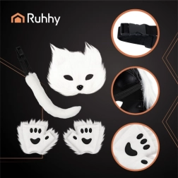 Väljenda oma isikupära RUHHY universaalse 4‑ühes kostüümiga. Komplekt sisaldab kummipaelaga maski, reguleeritavat vormitava traadiga saba ning armsaid käppi/kindaid. Tänu pehmele ja mõnusale kunstkarvale, universaalsuurusele ja kergelt kaalule sobib see ideaalselt cosplayks, konventsidele, fotosessioonidele, pidudele ja Halloweeniks. Muundud hetkega salapäraseks kassiks, lummavaks rebas eks või metsikuks hundiks – pane selga ja sära.
