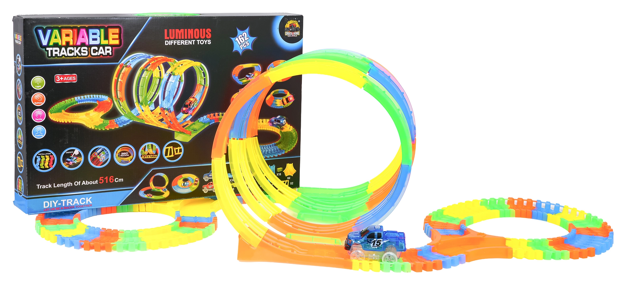 Pakkuge lastele lõputut lõbu 162-osalise võidusõidurajaga, mis on paindlik, helendab pimedas ja sisaldab LED-autokest. Tükke saab kergesti klõpsuga ühendada erinevateks kujunditeks ja silmusteks, nii et väiksed võidusõitjad alates 3. eluaastast saavad luua oma radasid ja nautida kaskadööritrikkidega sõitu muljetavaldavate valgusefektidega.