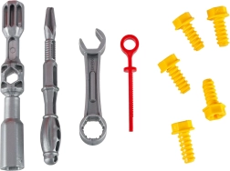 Komplektis on rikkalik valik detaile ja tööriistu: 31 kruvi ja poldi/puuri, kaksikvõti ja kruvikeeraja, leht-/silmapadrunvõti, rattad koos velgedega, rool, kapott mootoriosadega ning isikupärastamiseks kleebised. Nii treenivad lapsed peenmotoorikat, kannatlikkust ja loogilist mõtlemist – ning samal ajal lõbutsevad.