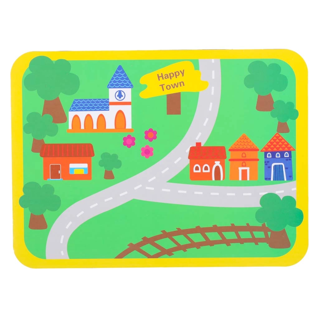 Värviline alus teede ja hoonetega ergutab kujutlusvõimet ja õpetab liiklussituatsioone, sobib suurepäraselt nii iseseisvaks kui ka ühismänguks.